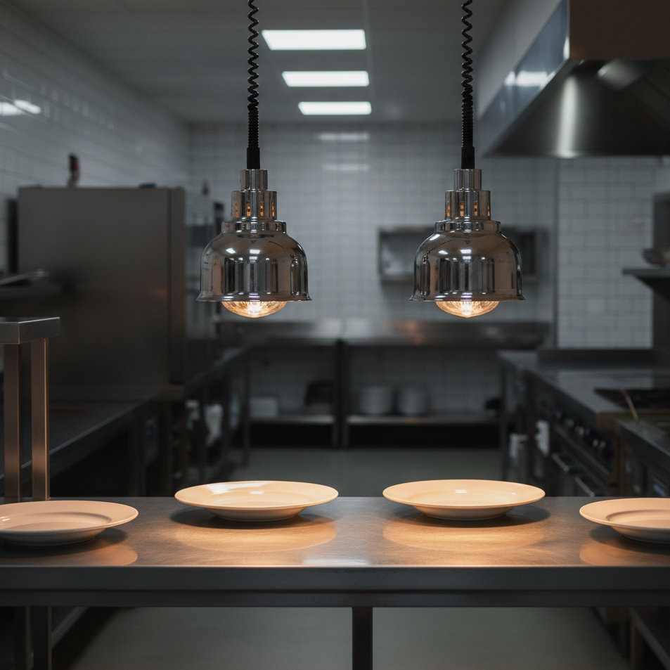 Le lampade riscaldanti professionali sono progettate per mantenere gli alimenti alla temperatura ideale prima e durante il servizio.Ideali per cucine professionali e buffet, assicurano controllo termico, affidabilità e continuità operativa.